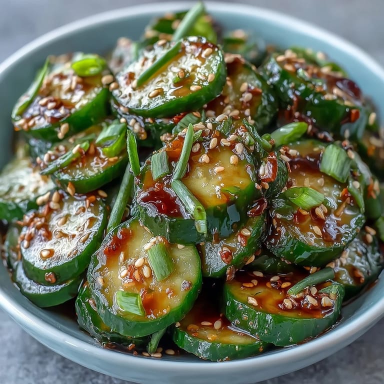 Save My neighbor handed me a container of this salad on a sweltering summer afternoon, and I was skeptical until the first bite hit my tongue—that snap of cold cucumber with the whisper of sesame oil and vinegar just made everything click. She laughed when she saw my expression and said it was the easiest thing she made all week, something she'd learned from her grandmother who swore by letting the cucumbers weep out their water first. I've made it dozens of times since, and it's become my go-to when I need something that feels light but tastes intentional.