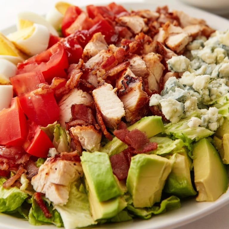 Save The first time I encountered a properly constructed Cobb Salad was at a Hollywood diner where the waitress actually explained the neat rows of ingredients like she was revealing state secrets. Something about seeing all those colors lined up in perfect stripes made the ordinary act of eating salad feel unexpectedly special and deliberate.