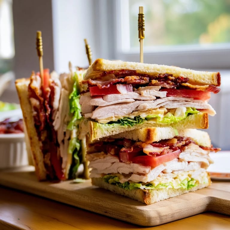 Save The smell of bacon hitting a hot skillet will always pull me into the kitchen faster than anything else. I started making club sandwiches during college when I needed something that felt substantial but wouldn't require actual cooking skills. My roommate and I would stack them impossibly high, competing to see whose would stay upright longer. Now I make them properly, with care instead of chaos.